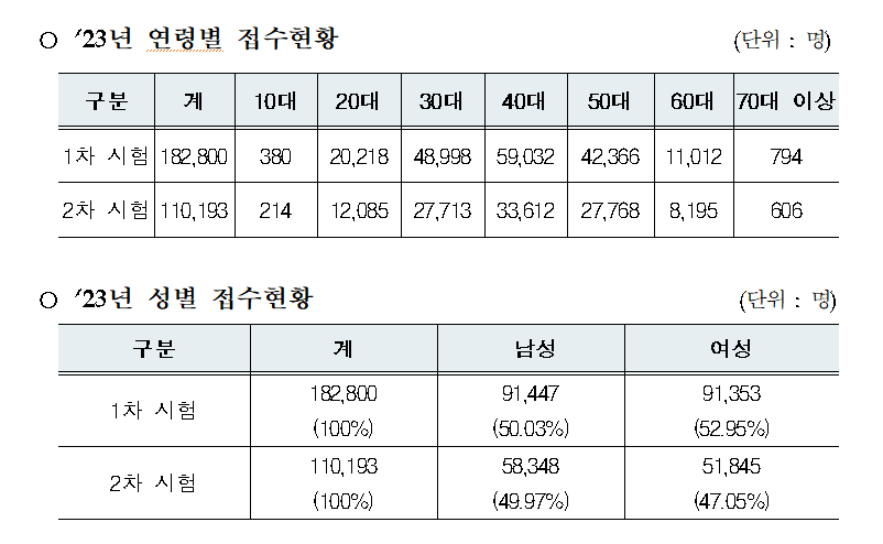 23년 시험 접수결과현황과 역대합격률을 통해 난이도등을 예상해 보겠습니다.