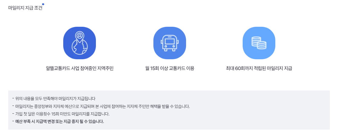마일리지 지급조건은 월 15회 이상 교통카드 이용하고, 60회까지 적립이 되어야 지급이 됩니다.