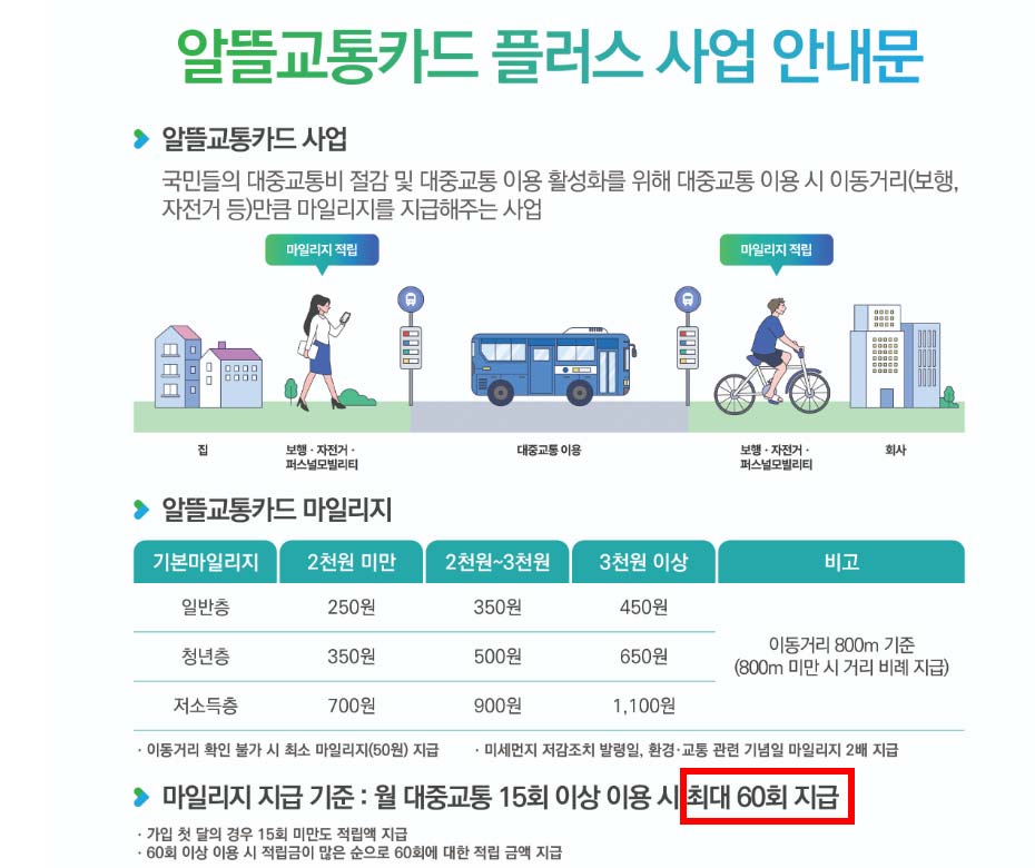 기존에도 "알뜰교통카드"는 원래 시행 중이었는데 이 혜택이 더 커진 것입니다. (기존이용자는 별도의 신청 없이 혜택 바로적용)