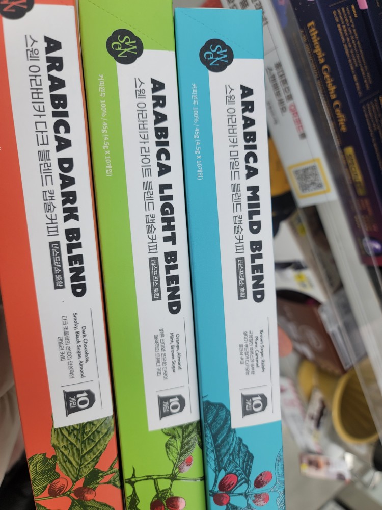 다이소 커피캡슐은 스웬이라는 브랜드의 커피캡슐입니다. "게이샤 블렌드"와 "아라비카 블랜드" 2종류로 출시되었습니다.
