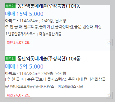 현재 올라온 매물들도 15억~ 15억 5천정도입니다.