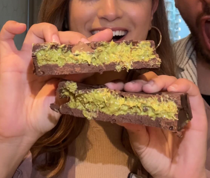 두바이초콜릿이란 두바이에서 판매하고 있는 초콜릿으로 초콜릿안에 피스타치오 스프레드와 중동식 면 형태의 카다이프가 들어간 초콜릿입니다.
