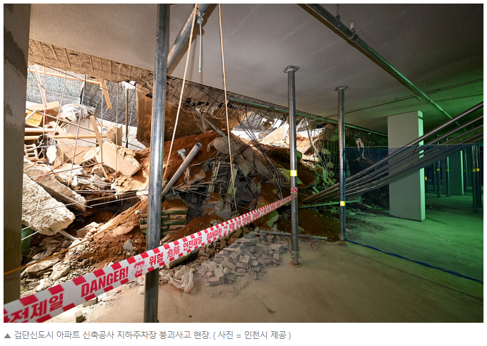 광주 화정아이파크 붕괴 사건이 있은지 얼마 되지 않아 얼마전 검단 신축아파트 지하주차장이 붕괴되는 일이 또 벌어져서 크게 논란이 됐었습니다.