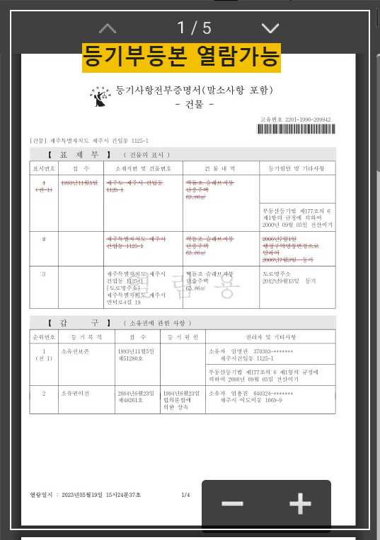 아래는 경매마당에서 등기부등본을 열람하는 화면입니다.
