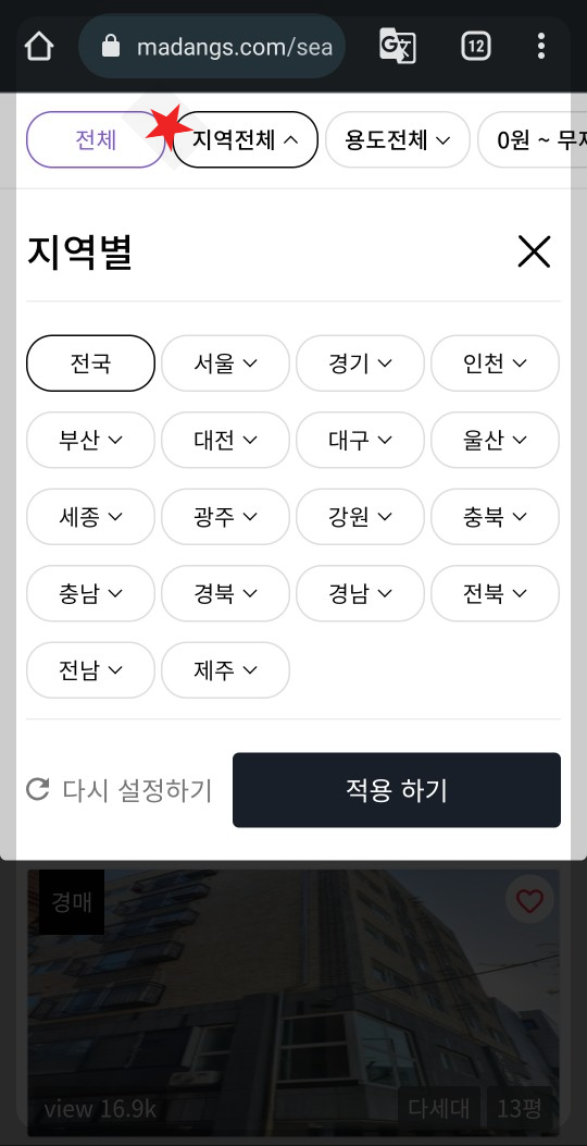 일반검색은 지역, 유찰횟수, 용도 등을 선택하여 매물리스트를 검색할 수 있습니다.
