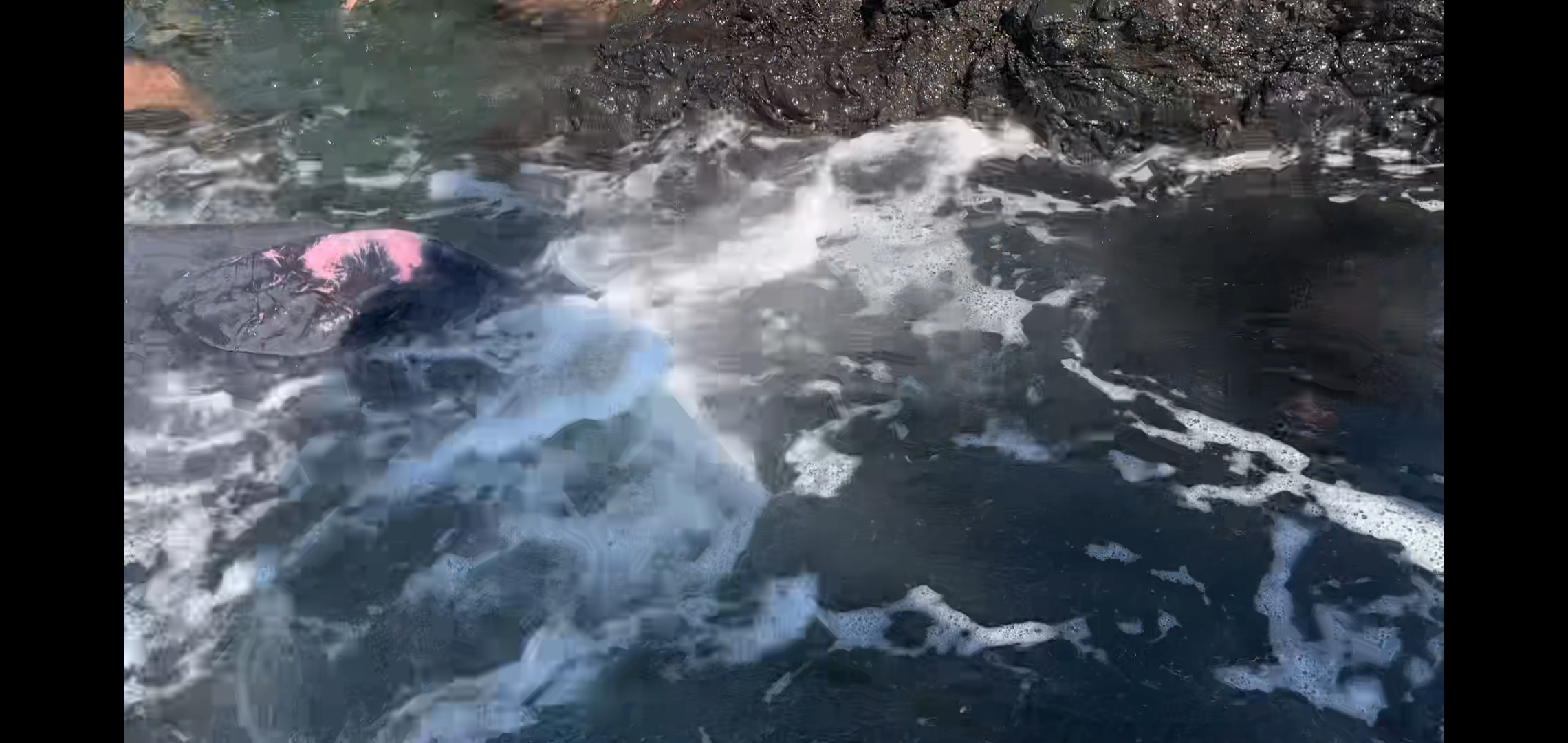 아마 새끼 향유고래는 바위틈사이에 갇혀서 괴로워하며