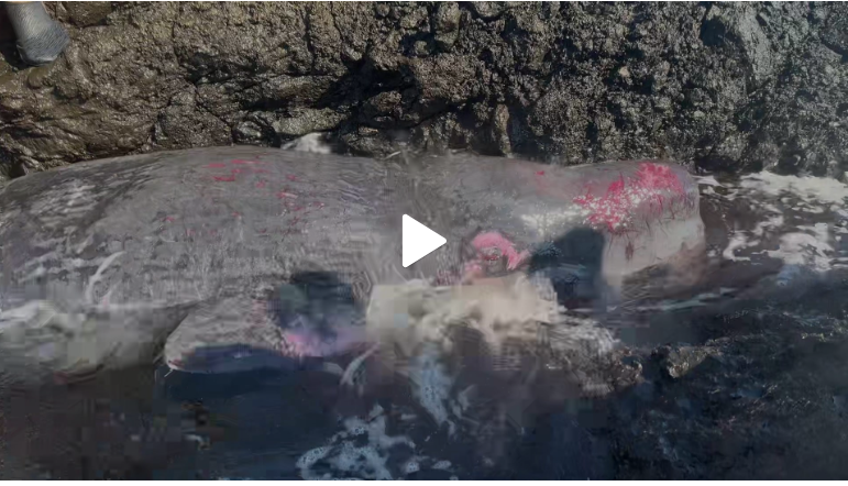 바위틈에 끼어서 괴로워하며 피를 흘리고 있던 향유고래 소식을 전해 드립니다.