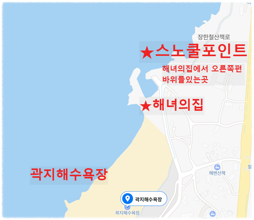내비게이션 주소 : 제주시 조천읍 함덕리 200 (함덕해수욕장 아닙니다. 함덕해수욕장에 주차하시면 스노클링 포인트까지 10~15분 도보로 걸어야 함)