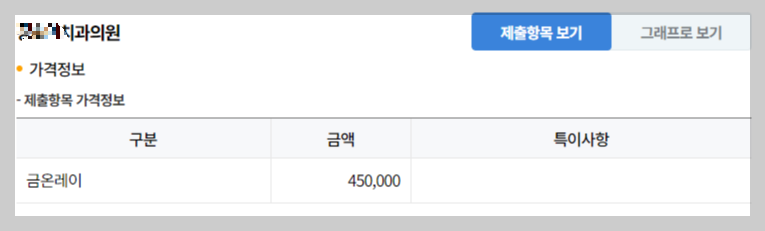 미리 고지된 가격은 HIRA (건강보험심사평가원) 사이트에 모두 투명하게 공개되어 있습니다.