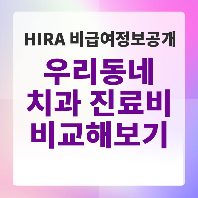 HIRA 비급여진료비정보 홈페이지를 이용하면 우리동네 치과 진료비도 병원마다 비교해 볼 수 있습니다.
