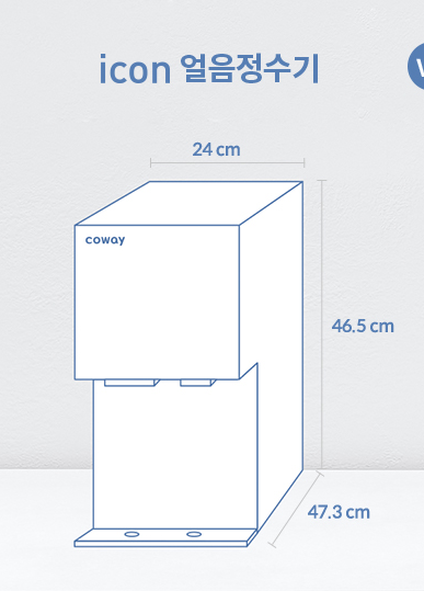폭과 길이 높이 등이 커져도 자사 또는 타사브랜드 대비 콤팩트한 사이즈라고 하니 얼음정수기 구매를 고민하신다면 아이콘 얼음정수기도 좋은 대안입니다.