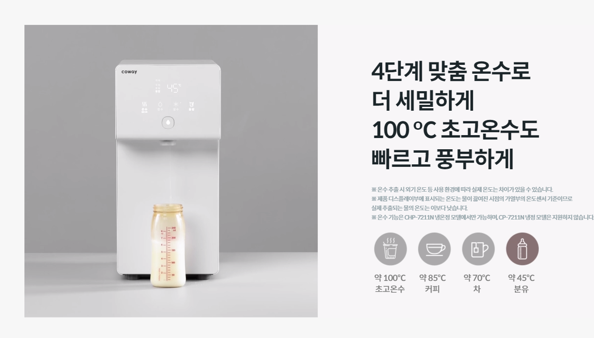 저에게 필요한 기능은 냉수 + 온수 + 정수 기능이었습니다.