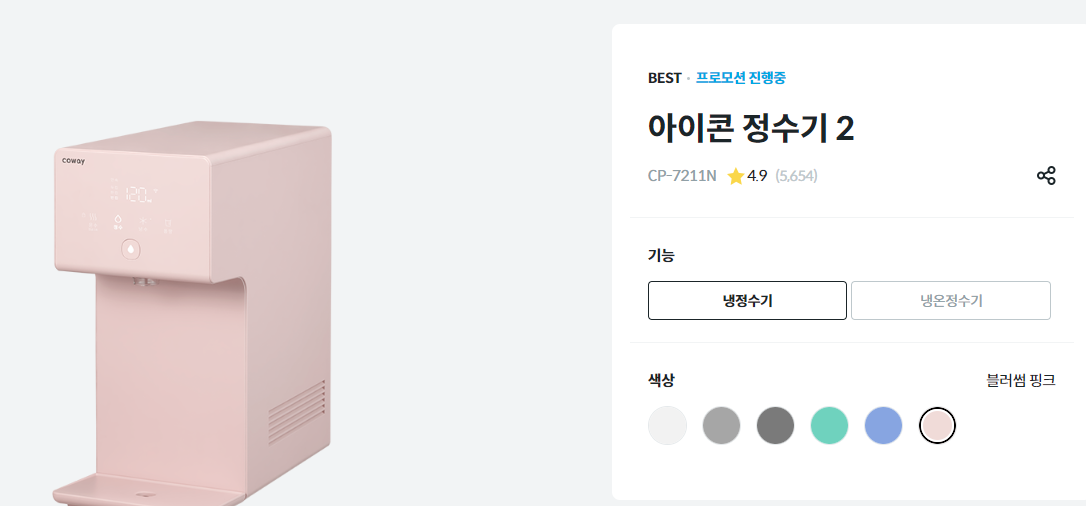 아이콘정수기 1도 있었는데 업그레이드되어 출시된 지 얼마 안 된 아이콘정수기 2를 선택했습니다.