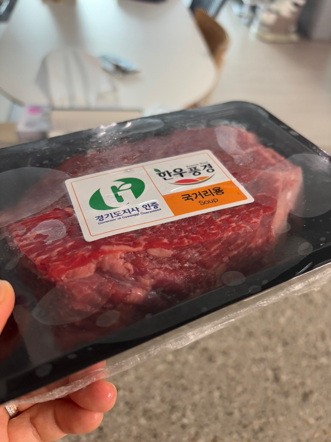 경기도지사 인증받은 한우 국거리와 사골곰탕으로 매우 신선했습니다.