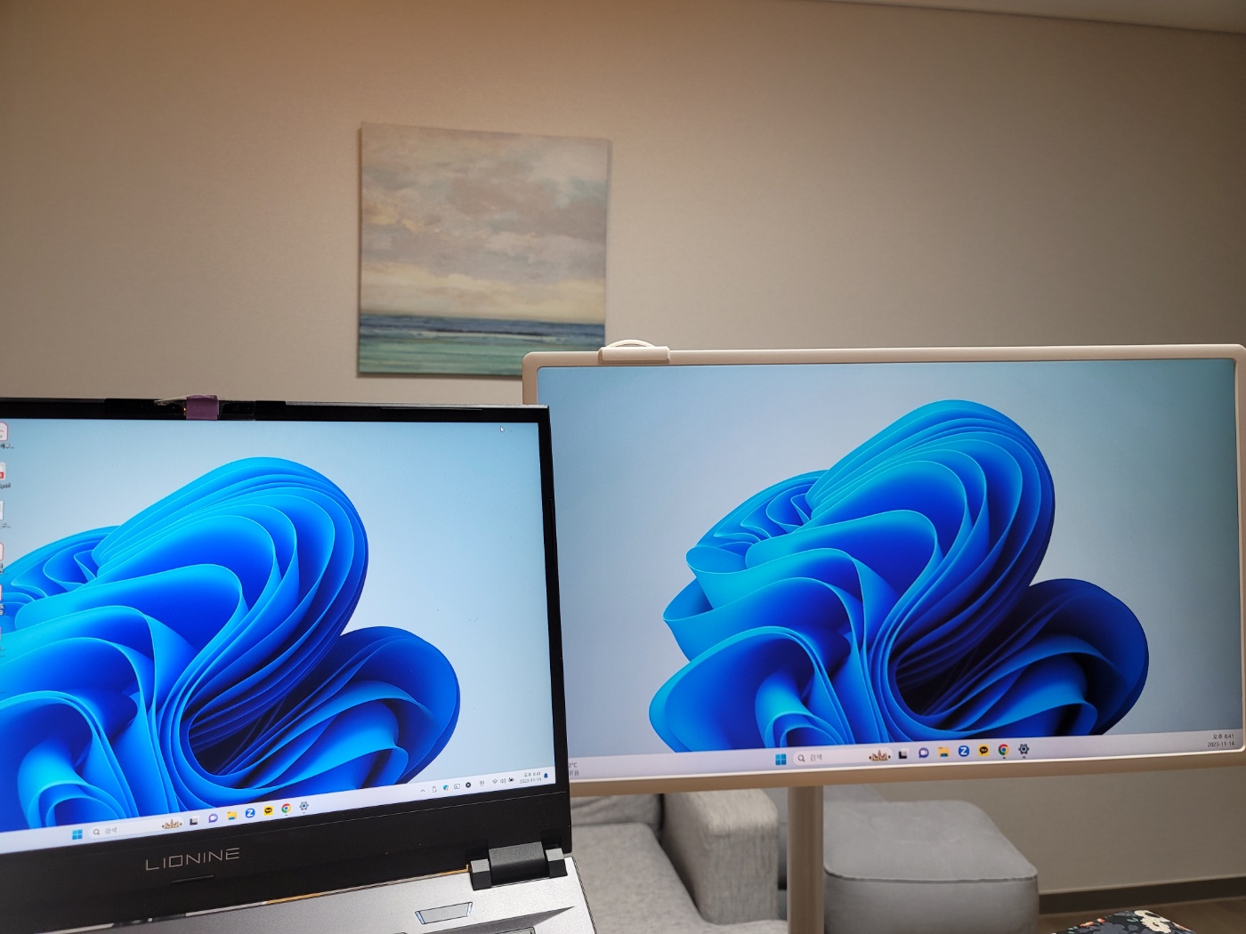 연결방법도 쉽고, 화면도 널찍해서 업무효율이 배는 올라가는 기분입니다.