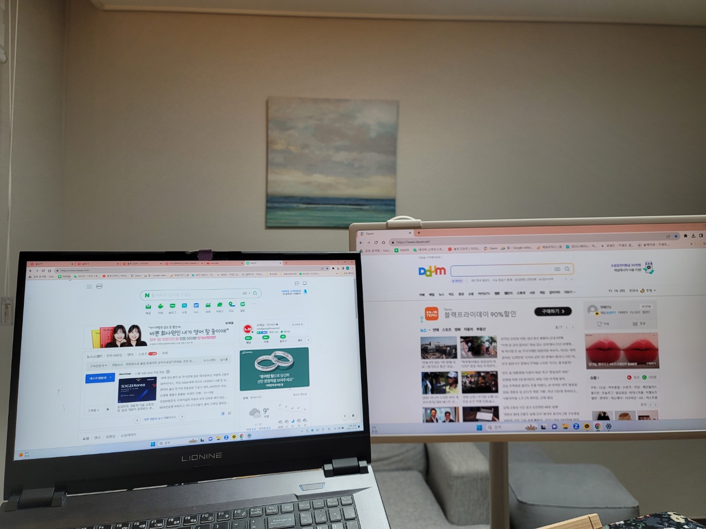 왼쪽 노트북에는 네이버 첫 화면, 오른쪽 스탠바이미에는 다음 첫 화면을 띄우고 사용해 봤습니다.